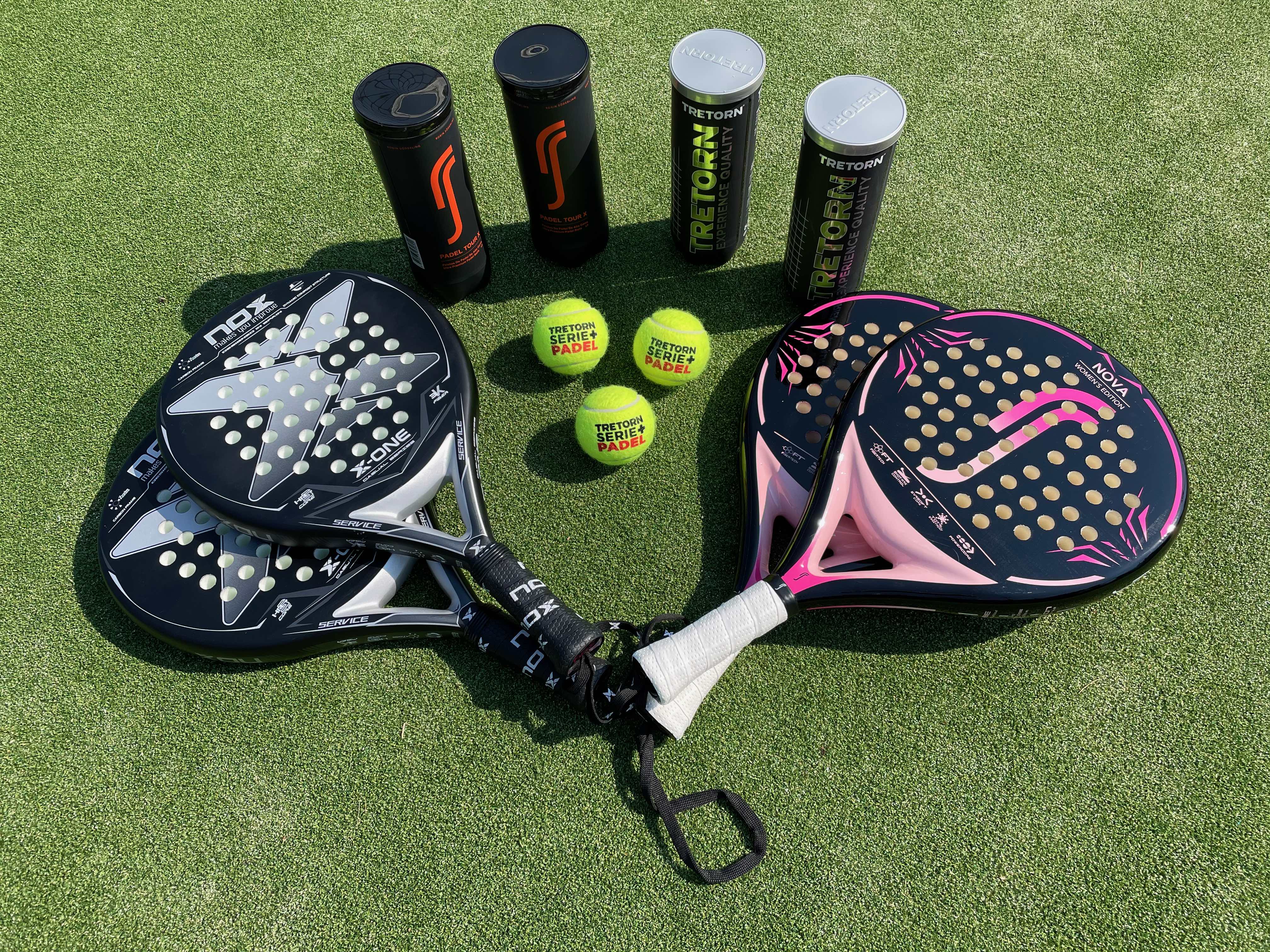 Hos oss kan du hyra lånerack, köpa bollar samt andra produkter som kan tänkas behövas för att spela padel.